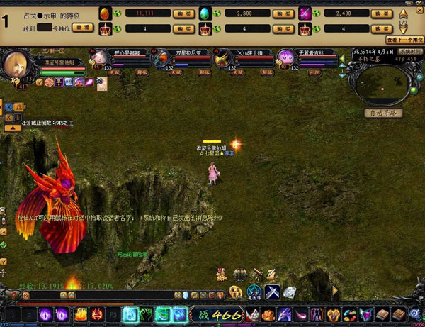 大家主要看站的地方,记住还要把远程打开,这样就会看到王了。在这里王不会发技能,看看没体力就等会,还可以看看远程摊位有你中意的东西可以买回来。体力满了就狂用龙魂爆,接着就等着爆灵魂法宝吧!