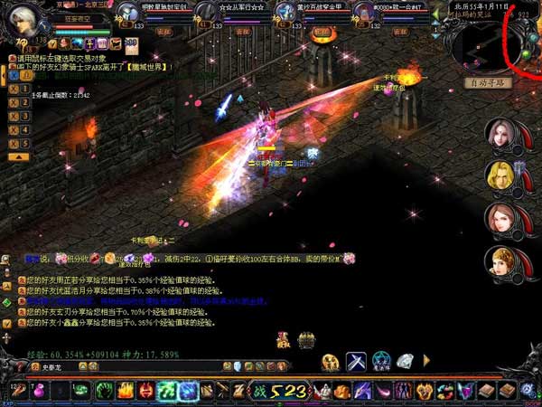 我用红色笔圈起了怪的位置,被小地图挡住是没有关系的,只要你的鼠标由小手变成了剑就可以发出龙魂攻击。