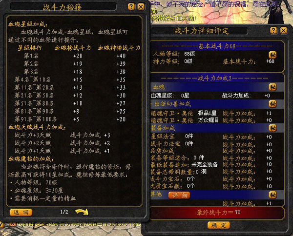 看到了这些之后,我在想,要是最多只能出征2只BB的话,那战斗力不就比其他职业低很多吗?我点开了战斗力评定的那个窗口,我想知道吸血鬼是怎么算战斗力的。答案是:血魂——吸血鬼的第三只幻兽。