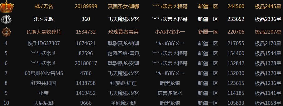 如上图:2000星以上幻兽4只,1000星以上幻兽6只,第11名幻兽是只骨灵本体800多星。接着再看看名人堂吧!