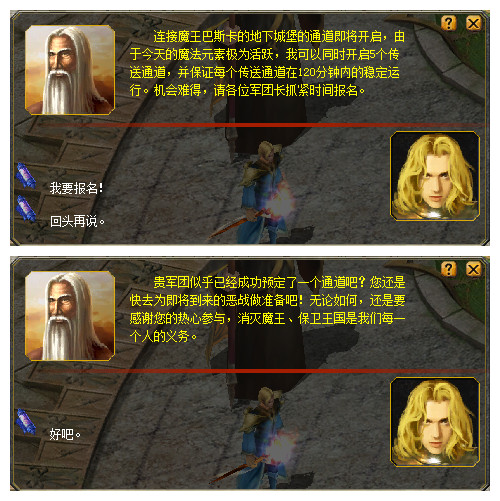 准备好了军团,那么就可以去报名了,报名地点:雷鸣回城点大先知·哈默处,报名时间:每周六下午14:50。