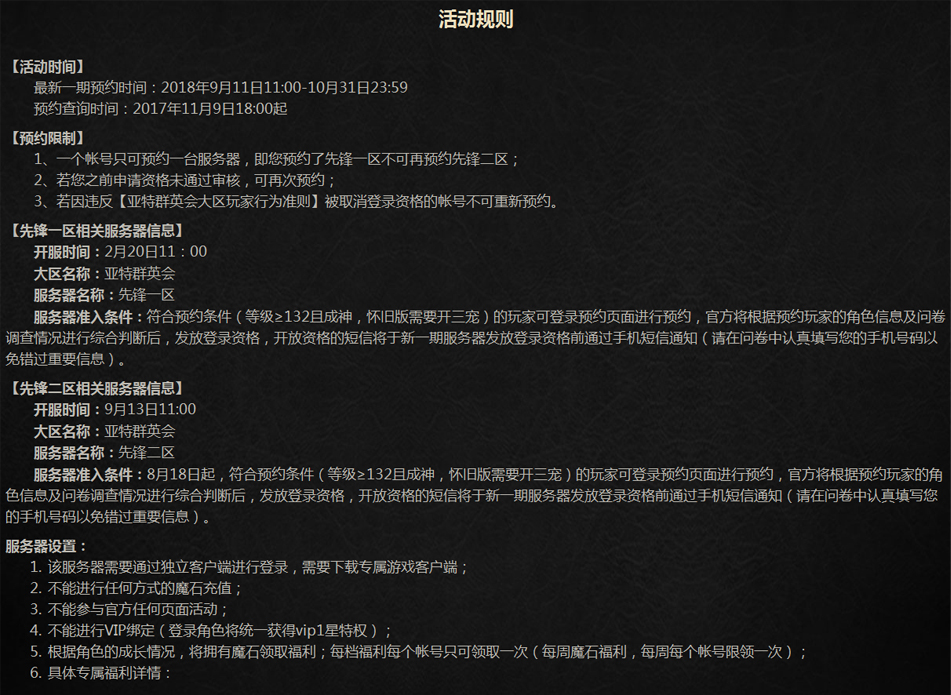 等级≥132且成神(怀旧版需开三宠),就可以申请预约先锋区账号了。