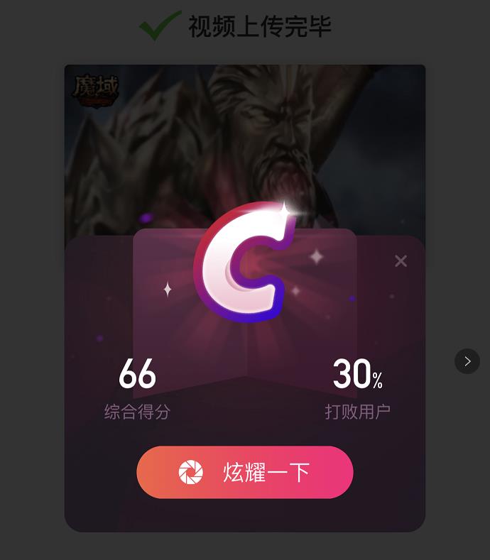 三、经过几次尝试,就可以提交作品, 小记家乡话口音太重,结果只得了66分,跟自己的名字一样
