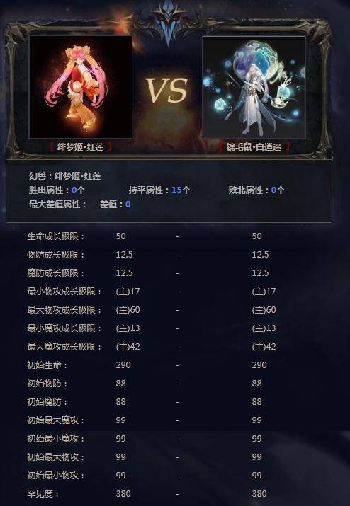 现在,我们可以举个例子,将红鸡转化为锦毛鼠。首先看一下红鸡和锦毛鼠的属性对比图: