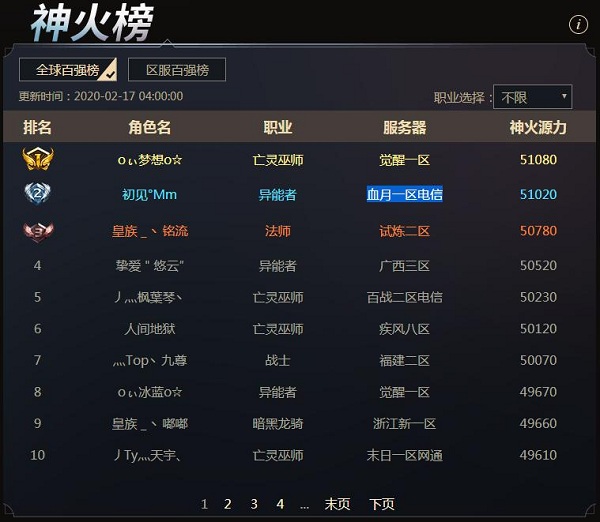 看看!在小记还在2万冲3万的神火上排行时,大佬们都4万飘5万了!
