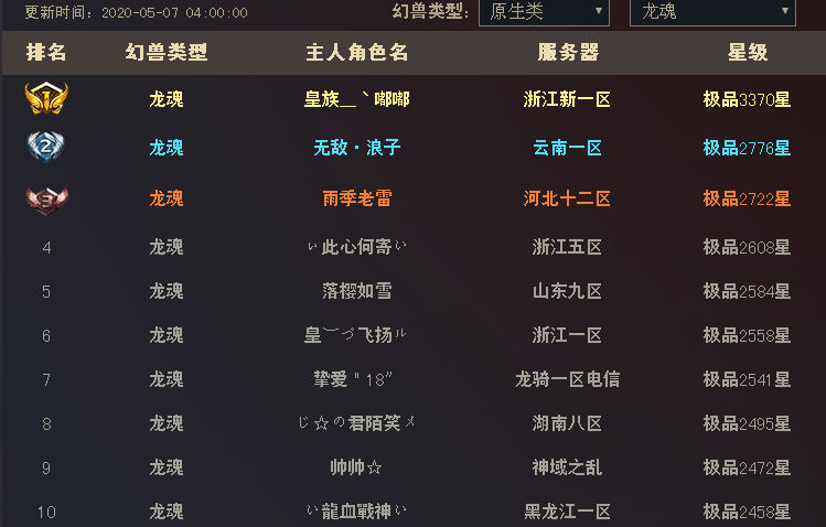 TOP 10:来自黑龙江一区 龙血战神 2460星