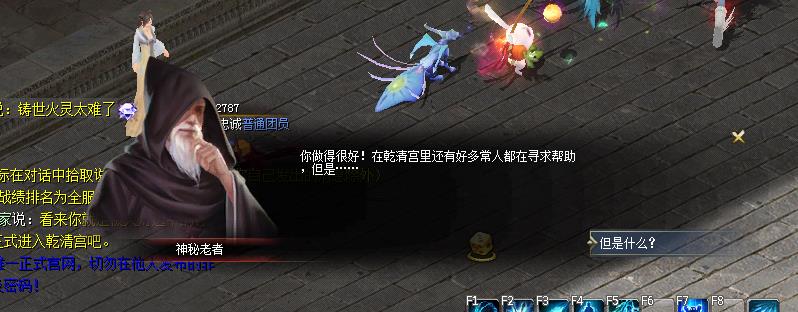 初次进入乾清宫,需要通过神大陆的乾清宫蜃楼幻影完成前置任务才能进入。前置任务也简单,和神秘老头对话,然后自动寻路去拿下灯就可以了。