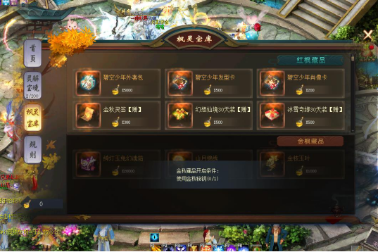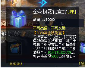 玩家在问卜过程中会累计仙缘值,奖品价值越低,仙缘值越高(盛装秘晶=100仙缘值),累计足够数量的仙缘值可以获得不同级别的礼盒,最高获得金秋枫露礼盒Ⅳ,其中包含2500点枫露值,加上前面的奖励,少年碧空全套外观稳稳到手!