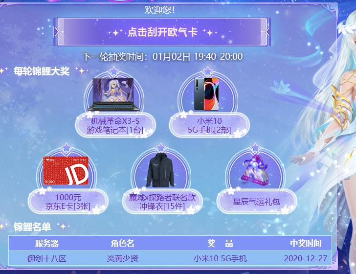 天命之星还有两场福利发放,分别是2021年1月2日和1月3日晚19:40——20:00!