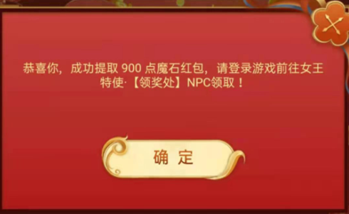 达到提现标准,提取900魔石,成功!登陆游戏在10号就可以领取魔石了!