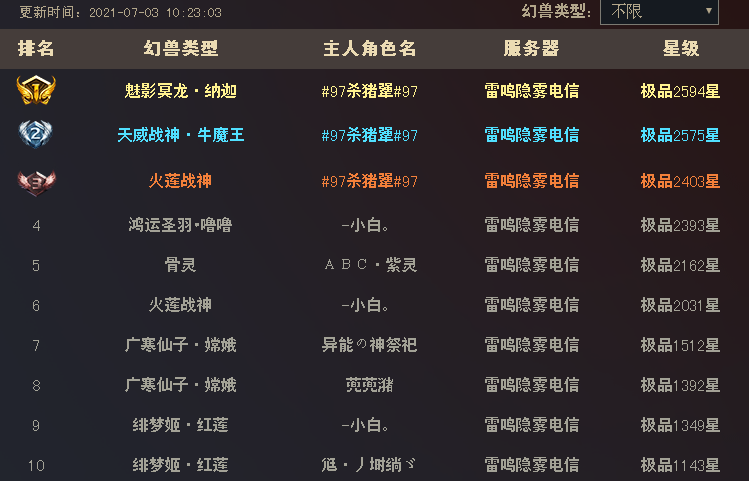 毕竟雷鸣隐雾也算是一个比较老的区服了,这样的幻兽成绩着实是不够看的!