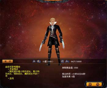 在说血魂系统前首先有一点要跟各玩家说明一下,血魂系统里面所有的幻化都需要消耗精血,所以在幻化前请大家记住精血的三个来源: